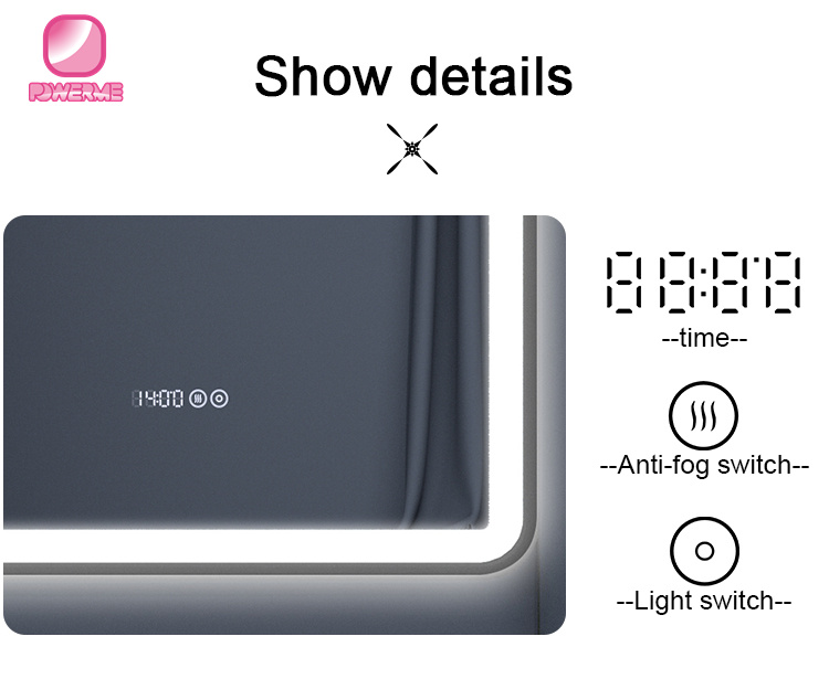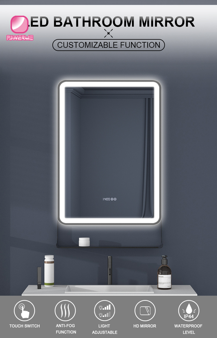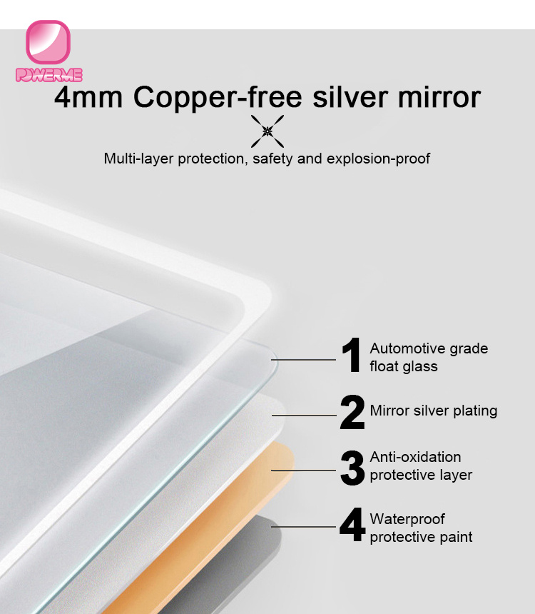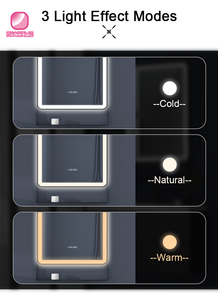 PM-E100 LED Lighted Bathroom Mirror 3 Color lighting Dimmable