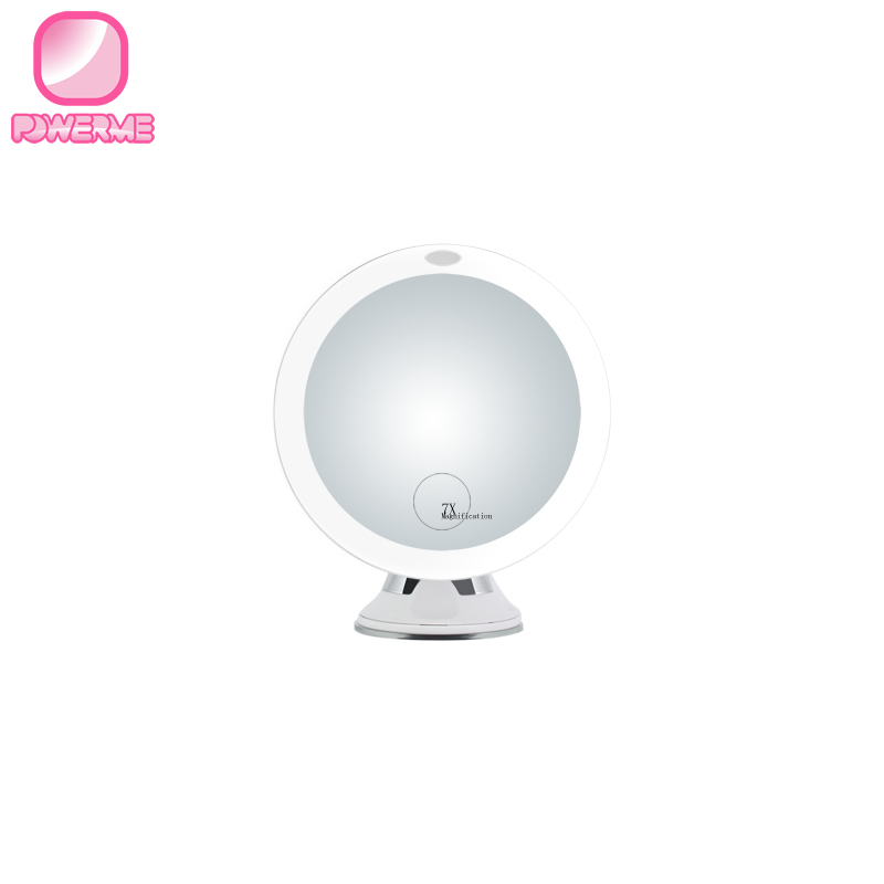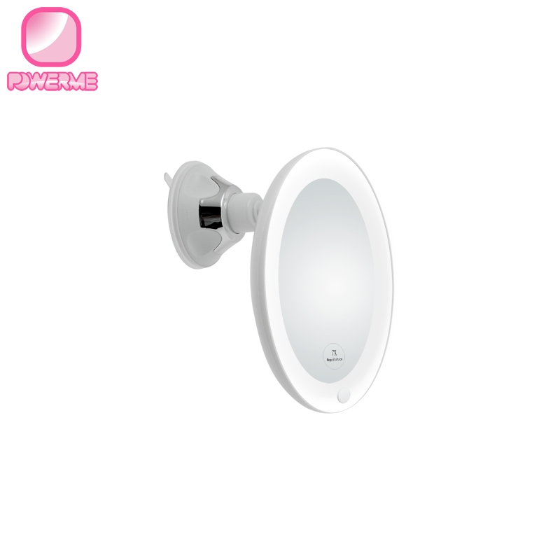 BM-1318 塑料圓形浴室LED化妝鏡 旋轉吸盤10倍放大鏡