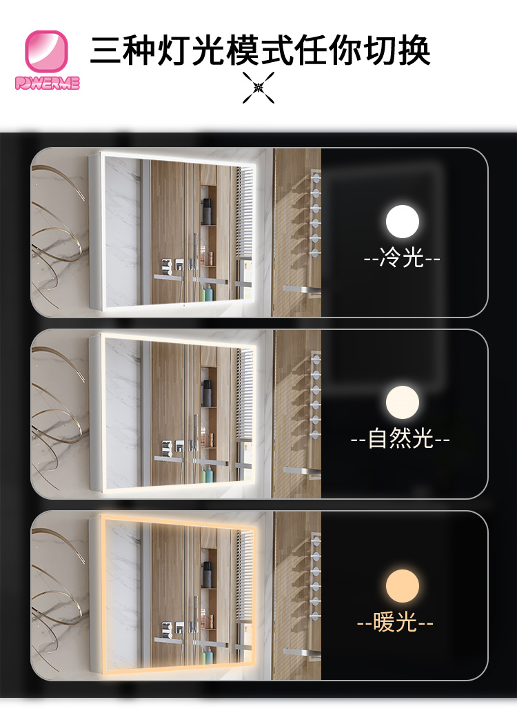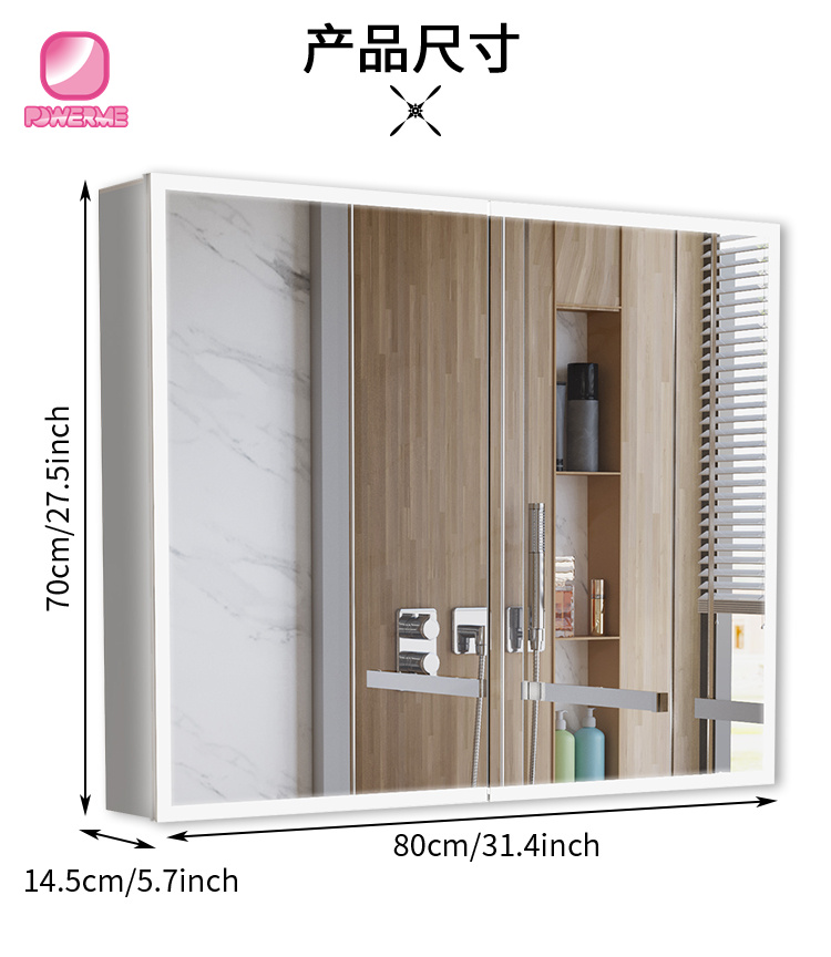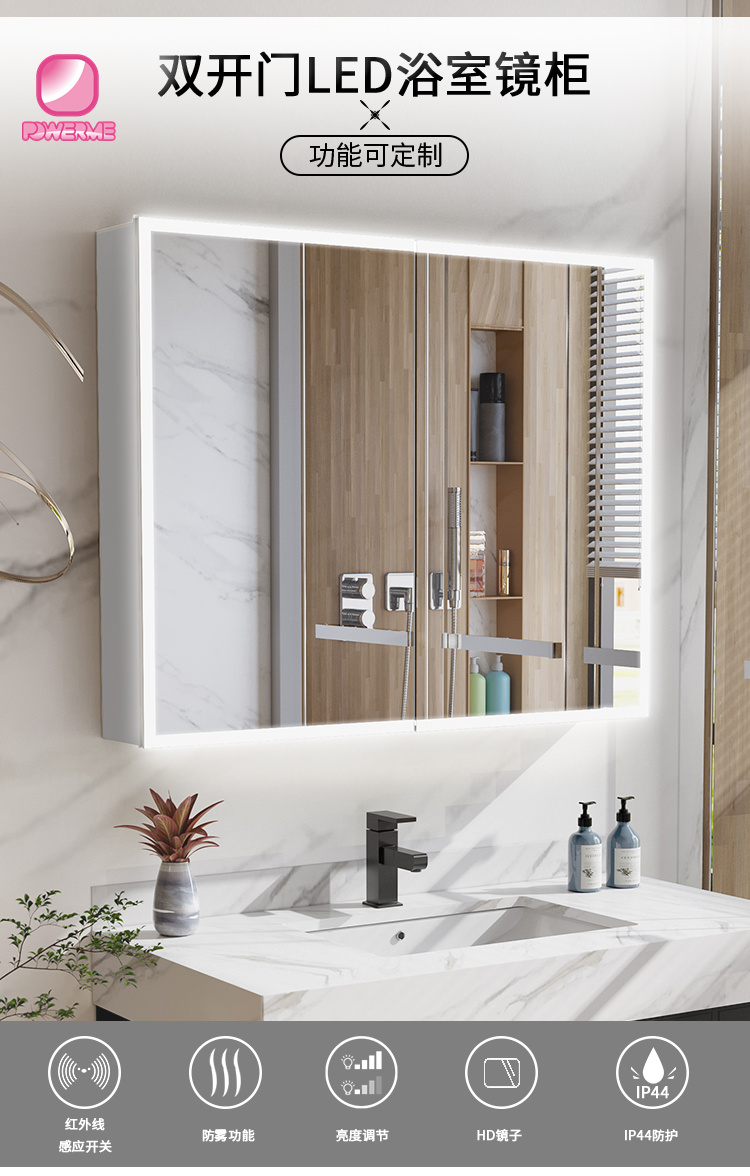 PC-A102 輕奢雙門LED感應開關浴室儲物衛浴一體柜防霧化妝鏡導光鏡柜